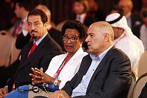 وفي الجلسة الثانية عرض المدير التنفيذي للتسويق والاعلام في اللجنة القطرية المنظمة لكأس العالم 2022 ناصر الخطيب الاستعدادات التي تقوم بها قطر لاستقبال هذا الحدث مشيرا الى ان الدوحة تعمل على بناء حوالي 12 ملعبا بحلول العام 2015 .