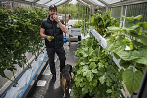 تسبح الأسماك في الأسفل لتوفر السماد وتُزرع نبتات الطماطم فوقها، في تلك 'المزرعة الحاوية' (أو المزرعة على سطح كونتينار) التي تُعتبر نموذجاً لنهج زراعي حَضَري (مديني)، يوفق بين تربية الأسماك وزراعة البقول تحت إدارة شركة ناشئة في برلين.