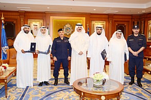 التقى معالــــي نـــائب رئيس مجلس الوزراء ووزير الداخلية ووزير الاوقاف والشئون الاسلامية بالإنابة الشيخ/ محمد الخالد الصباح وبحضور وكيل الوزارة المساعد لشئون الجنسية والجوازات اللواء الشيخ/ مازن الجراح الصباح رجال حماية موكب سمو الأمير الراحل الذين تم منحهم الجنسية الكويتية، حيث وجه معاليه تحية فخر واعتزاز لهم مؤكدا أهمية الأمر السامي لحضرة صاحب السمو أمير البلاد الشيخ/ صباح الاحمد الجابر الصباح حفظه الله ورعاه والتي جاءت تعبيرا عن التقدير لحب الوطن والتضحية من أجله.