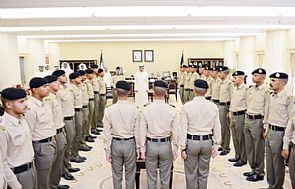 وقام الأمين العام المساعد لشؤون حرس مجلس الأمة اللواء ركن بسام الرفاعي بتقديم أفراد الدفعة للرئيس الغانم الذي قام بدوره بتهنئة المعينين الجدد وحثهم على بذل المزيد من الجهد في العمل ليكونوا أسوة حسنة وعوناً لبقية زملائهم من أجل التفاني في العمل والإخلاص في العطاء وخدمة الوطن .
