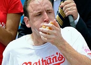 حافظ رجل أمريكي من ولاية كاليفورنيا، على لقبه كأكبر ملتهم لشطائر النقانق في سباق سنوي أقيم في جزيرة كوني بنيويورك بمناسبة العيد الوطني الأمريكي.
