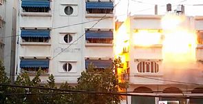 رصدت كاميرا ناشطين في غزة لحظة قصف منزل عائلة الفلسطيني سمير نوفل بثلاثة صواريخ من قبل قوات الاحتلال الاسرائيلي، أحدها تحذيري والآخران أطلقتهما طائرة 'F16'.