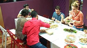 العشاء تكون من مأكولات من السفرة السعودية، أقام بعدها الطلاب سهرة موسيقية راقصة على الأنغام الخليجية.