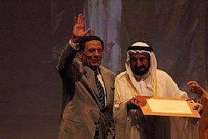 نشرت الصفحة الرسمية للنجم المصري 'عادل إمام' صوراً تجمعه بعضو المجلس الأعلى حاكم الشارقة سمو الشيخ الدكتور سلطان بن محمد القاسمي، وأخرى أثناء تسلّم الزعيم جائزة الإبداع العربي خلال فعاليات معرض الشارقة الدولي للكتاب 2014.