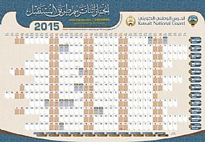 أصدرت مديرية التوجيه المعنوي في الحرس الوطني باقة من التقاويم بمناسبة العام الميلادي الجديد بأشكال واحجام مختلفة وبتصاميم مبتكرة لتلبي كافة الاحتياجات .