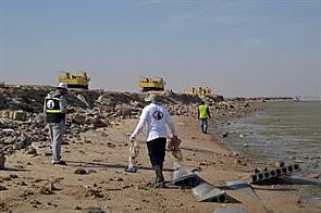 واوضح ان الفريق البيئي المشترك سيستكمل عمله غدا بتنظيف الساحل بأكمله نظرا لقدوم المد العالي خلال الايام المقبلة والذي سيؤدي الى استقرار هذه المخلفات في قاع الجون مسببة ضررا لمواطن بيوض الاسماك والروبيان ان لم يتم رفعها.