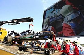وأشارت لقطات الاعادة إلى وجود عطل في نظام التعليق الخلفي الأيمن بعدما مرت السيارة فوق عشب صناعي عند مخرج المنعطف 11 ثم انحرفت عن المضمار لتصطدم بالحواجز.