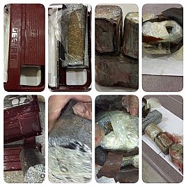 وقد أخفيت في لحوم مثلجة ولمبة وتمر، وأخطر مراقب المطار سليمان الفهد مدير عام الإدارة العامة للجمارك خالد السيف والذي أمر بإحالة الوافد والمضبوطات إلى مكافحة المخدرة.