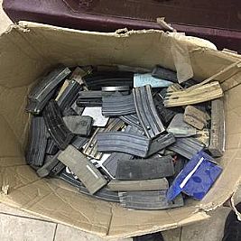 أُخطِر جهاز أمن الدولة عصر اليوم عن مجهول تخلص من كمية من الأسلحة وأدوات حادة وملابس عسكرية وذلك بإلقاءها في صندوق التبرعات .
