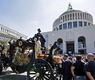 وحملت عربة مزخرفة يجرها ستة خيول جثمان فيتوريو كازامونيكا الى كاتدرائية للروم الكاثوليك في ضواحي روما يوم الخميس في جنازة حضرها نحو 500 من المعزين.