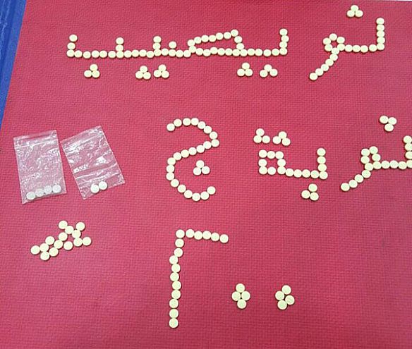 ضبط رجال جمارك منفذ النويصيب مسافر قادم من أحدى الدول الخليجية حاول تهريب ٢٠٠ حبة مخدرة تقريباً وذلك بإخفائها بداخل كيس في الملابس الشخصية وقد تم إحالة المتهم مع المضبوطات الى جهة الأختصاص.