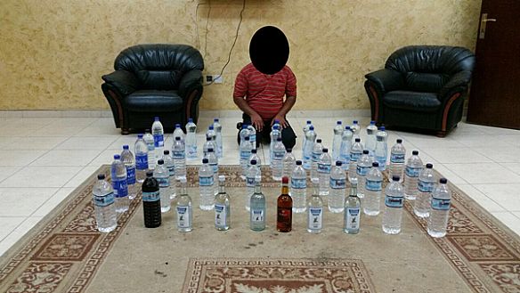 ١٠- ضبط مدعو هندي الجنسية بحوزته ٤٥ قنينة مياه الروضتين يشتبه بها مواد مسكرة + ٦ مستورد وتمت احالته للاختصاص