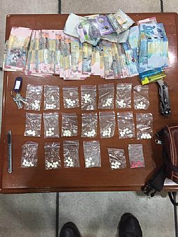 وخليجى عثر معه على كيس يوجد بداخله 134 حبة صفراء اللون يشتبه انها مواد مخدرة (كبتي) وكيس اخر يوجد بداخله عدد 5 حبه حمراء اللون يشتبه انها مواد مخدرة.