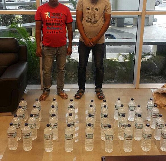 ضبط هندي و سيلاني و بحوزتهم 36 بطل ماء الروضتين كبير وبداخله ماده يشتبه بها مادة مسكرة