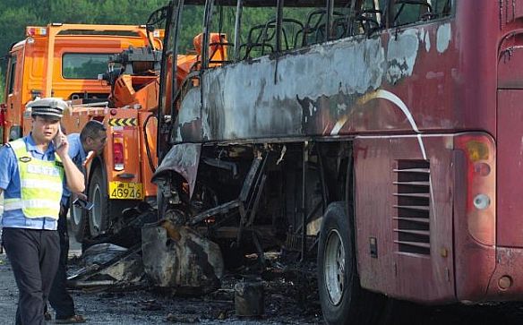 لقي 26 شخصا على الأقل مصرعهم، بعد أن سقطت حافلة من طريق سريع في قناة مائية، قرب العاصمة الصينية بكين، إثر انفجار إطارها.