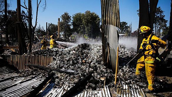 والحريق في بلو كات اندلع صباح الثلاثاء حوالى الساعة 10:30 بالتوقيت المحلي (17:30 ت غ) قبل ان يمتد الى الجبال الجافة في منطقة سان برناندينو على بعد حوالى مئة كلم شرق لوس انجليس.