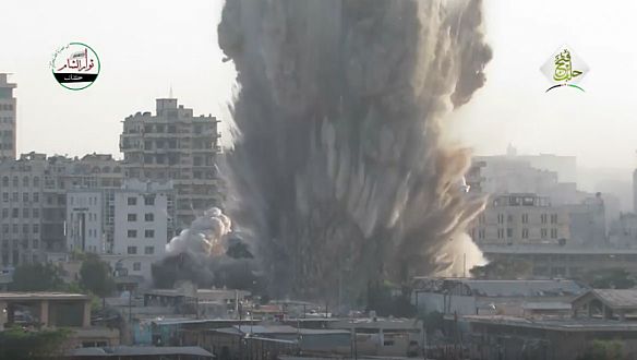 وأظهرت الحركة في شريط فيديو بثّته، لحظة توغل العربة المفخخة 'BMB' وانفجارها في تجمعات لبنايات متلاصقة، نُسف العديد منها بشكل كامل.