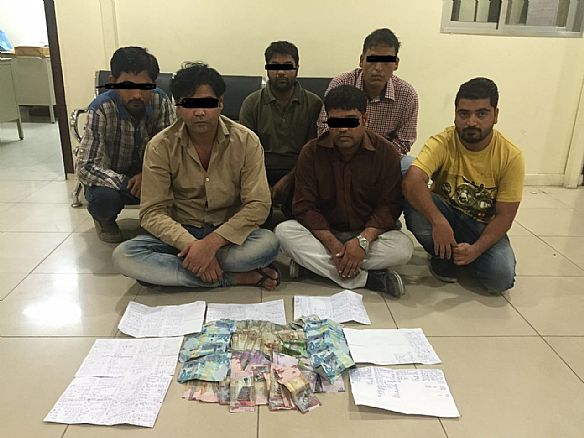 أبلغ مصدر أمني ((الآن )) أن رجال مباحث الاقامة تمكنوا من القبض علي ٦ وافدين ، يقومون بلعب القمار بجانب مجمع الصالحيه وعثر وبحوزتهم ١٠٩٧ دينار .