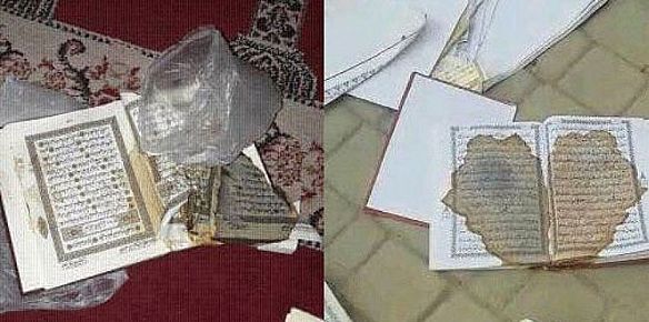 ونقل الموقع عن مصدر امني ان القاعة ومصحفا «تم تدنيسهما بالبراز والغائط».