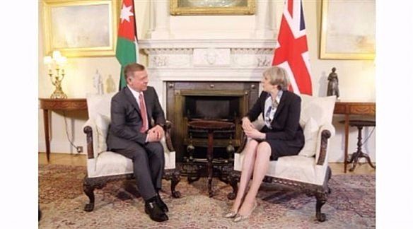 ونقلت وكالة الأنباء الأردنية اليوم عنه تأكيده، خلال لقائه رئيسة الوزراء البريطانية تيريزا ماي في لندن أمس، على «ضرورة تكثيف الجهود لتحريك عملية السلام بما يفضي لإعادة إطلاق مفاوضات جادة وفاعلة بين الفلسطينيين والإسرائيليين استنادا إلى حل الدولتين، باعتباره الحل الوحيد لإنهاء الصراع».