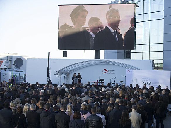 وقف ملك وملكة بلجيكا فيليب وماتيلد وضحايا وممثلون عن أجهزة الانقاذ دقيقة صمت في مطار بروكسل الأربعاء في الذكرى السنوية الأولى للاعتداءات الدامية التي أوقعت 32 قتيلاً في هذا المطار وفي محطة للمترو في العاصمة.