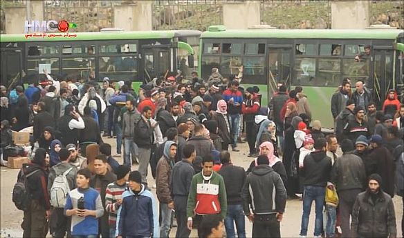 نقل الدفعة الثالثة من مهجري حي الوعر بحمص السورية