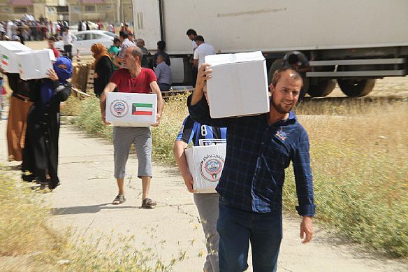وزعت دولة الكويت اليوم الاحد 2250 سلة غذائية على النازحين العراقيين المقيمين خارج المخيمات في مجمع (زيتونه) بمدينة اربيل ضمن حملة (الكويت بجانبكم) مقدمة من الجمعية الكويتية للاغاثة.