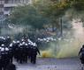 ورشق متظاهرون الشرطة بحجارة وزجاجات ومفرقعات، فتدخلت شرطة مكافحة الشغب لتفريق مجموعة من نحو ألف من اليساريين المتشددين الملثمين.