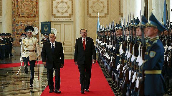 استقبل الرئيس الكازاخي نور سلطان نزارباييف، نظيره التركي رجب طيب أردوغان، اليوم السبت، في العاصمة أستانة.