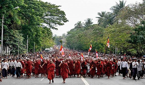بورما ... مقتل 7 متظاهرين بوذيين برصاص الشرطة