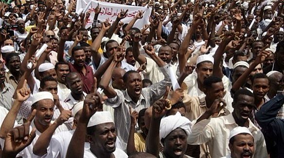 وهتف المتظاهرون الذي ساروا نحو ساحة في وسط أم درمان الواقعة على الضفة الغربية لنهر النيل: 'لا لا للجوع! لا لا لارتفاع الأسعار!'.