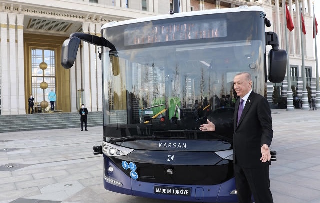 أردوغان يتوجه إلى اجتماع الحكومة بحافلة تركية ذاتية القيادة
