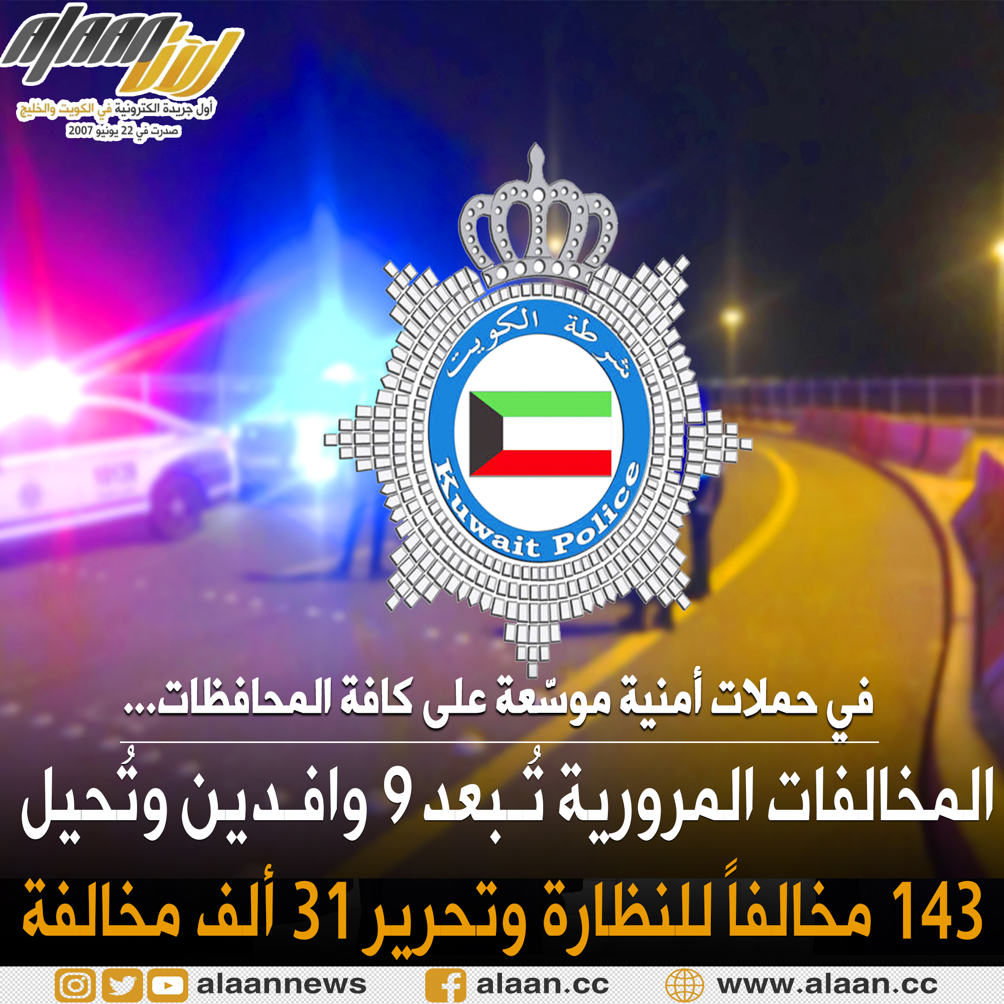 المخالفات المرورية تُبعد 9 وافدين وتُحيل 143 مخالفاً للنظارة خلال حملات امتدت لأسبوع من 30 يناير حتى 5 فبراير وأسفرت عن تحرير 31 ألف مخالفة « وضبط 18 مطلوباً و10 مركبات مطلوبة»