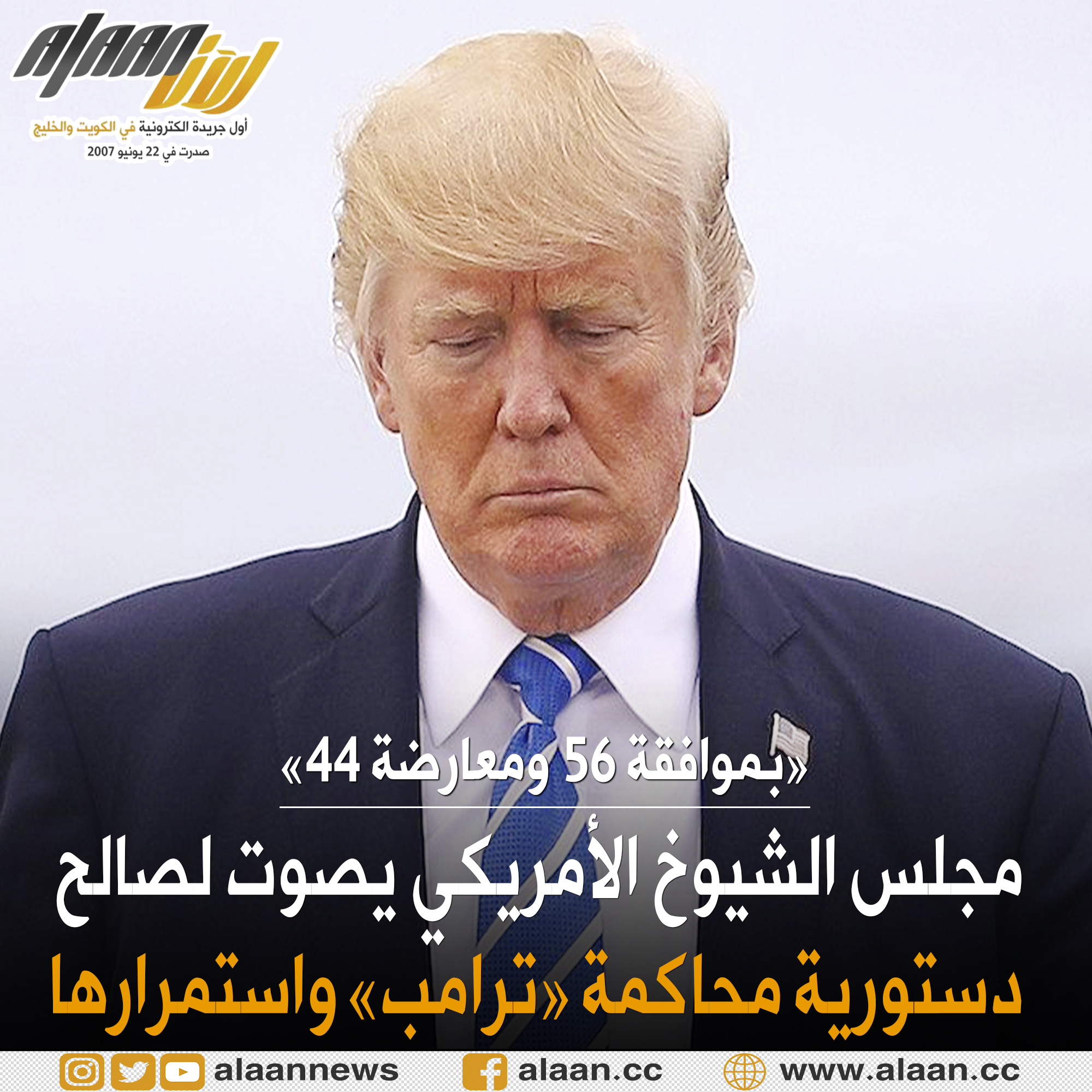#مجلس_الشيوخ_الامريكي يصوت بأغلبية 54 صوتًا مقابل 44 لصالح دستورية محاكمة الرئيس السابق دونالد #ترامب واستمرارها بتهمة #التحريض_على_التمرد على خلفية اقتحام مؤيدين له مبنى #الكونغرس