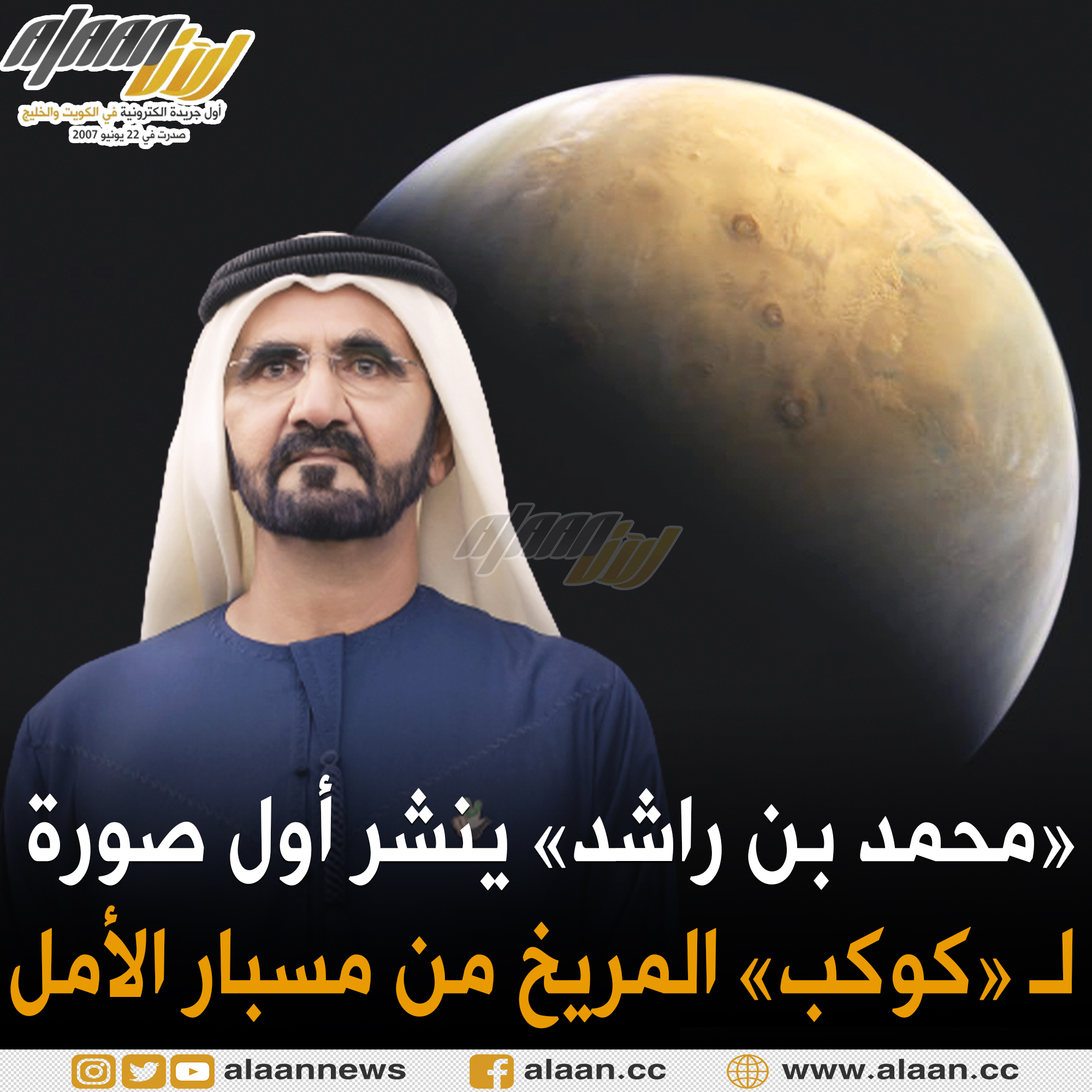 ونشر نائب رئيس دولة الإمارات حاكم دبي الشيخ محمد بن راشد، الصورة معلقا عليها: "من ارتفاع 25 ألف كم عن سطح الكوكب الأحمر، أول صورة للمريخ بأول مسبار عربي في التاريخ".