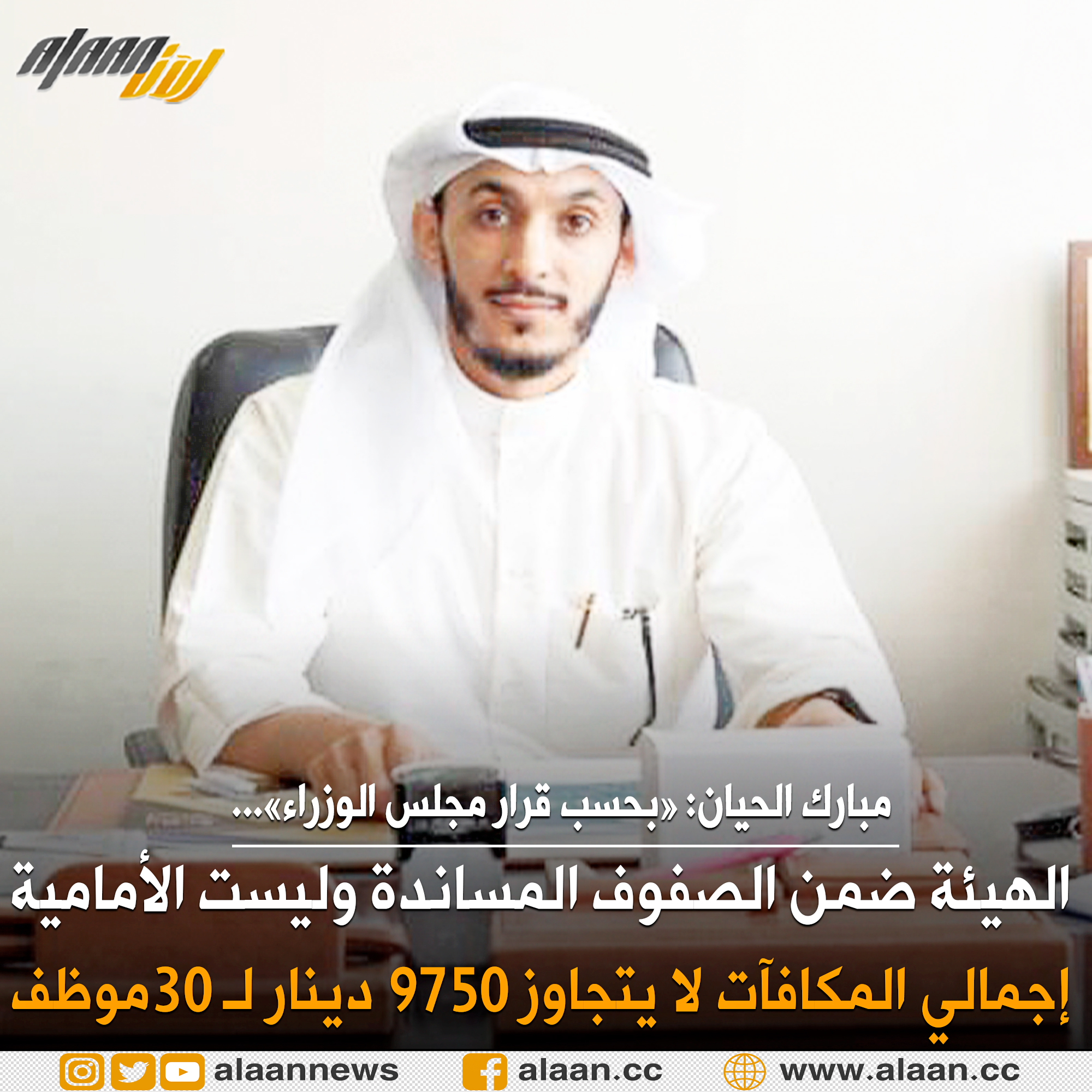 وأفاد إن الهيئة «اقترحت منح 30 موظفا مبلغا ماليا مقداره 9750 دينارا كويتيا فقط بناء على قرار مجلس الوزراء تم تقديرها بكل أمانة ومسؤولية وبحسب القرارات المنظمة».