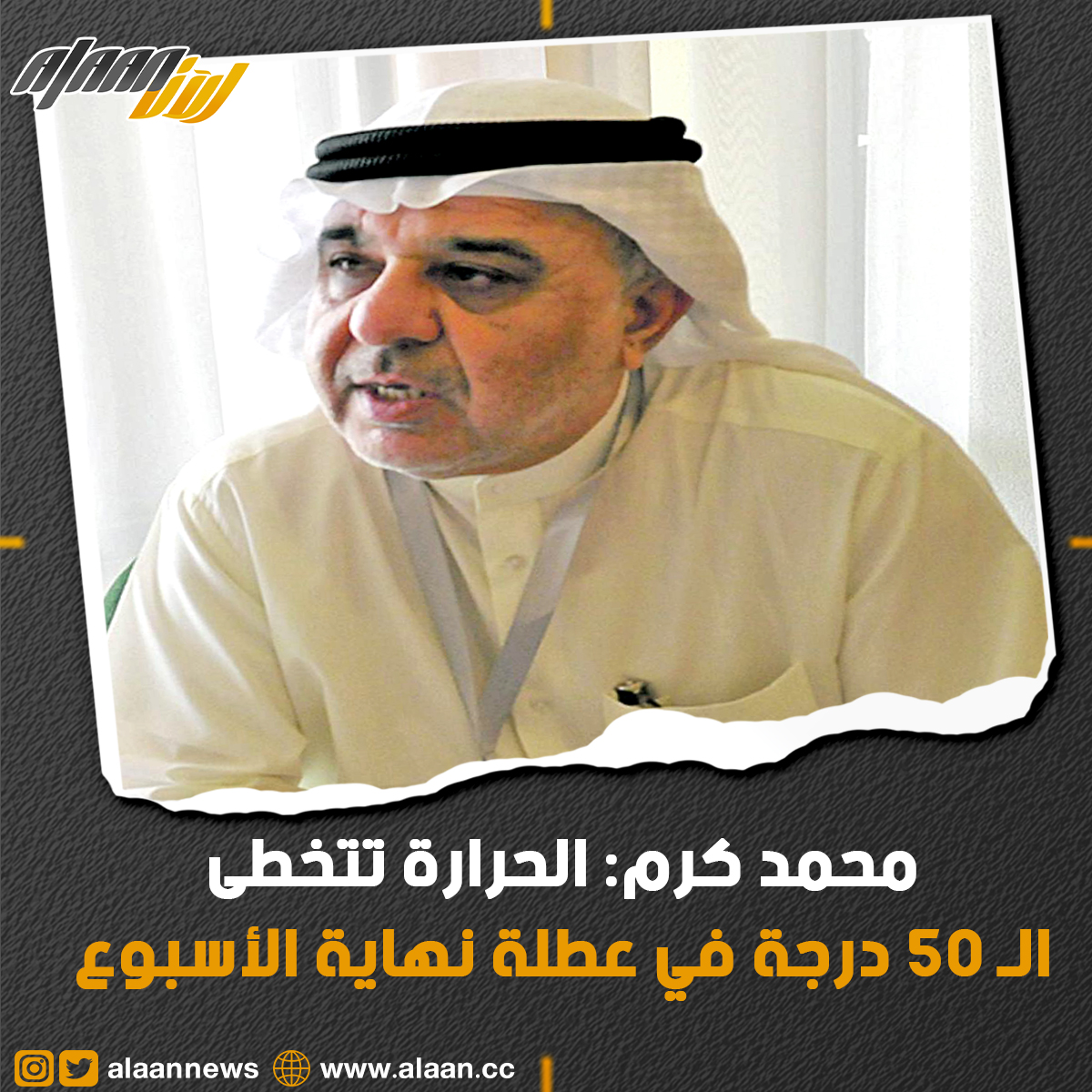 توقّع خبير الأرصاد الجوية محمد كرم لـ«الراي» أن ترتفع درجة الحرارة لتصل إلى أكثر من 50 درجة خلال عطلة نهاية الأسبوع.