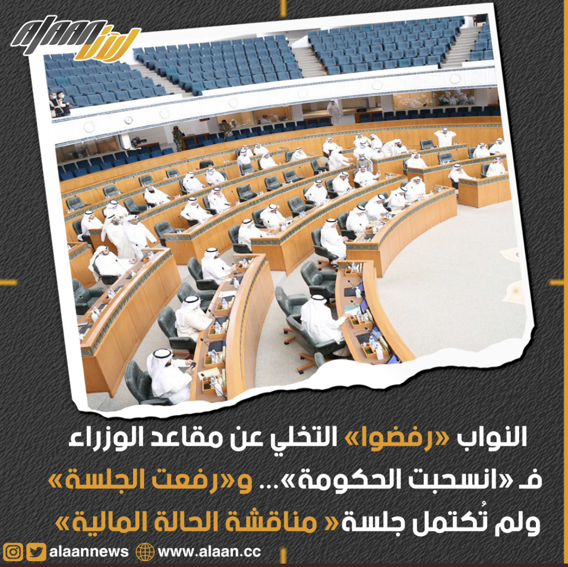-الحكومة انسحبت من جلسة مجلس الامة على اثر المطالبة باخلاء النواب الصفوف الامامية للقاعة ليتسنى للوزراء الجلوس في مقاعدهم لكن النواب رفضوا ذلك مما اضطر الحكومة للانسحاب من الجلسة ورفع الغانم على اثر ذلك الجلسة عقب تلاوة مرسوم فض دور الانعقاد وغادر مجلس الامة