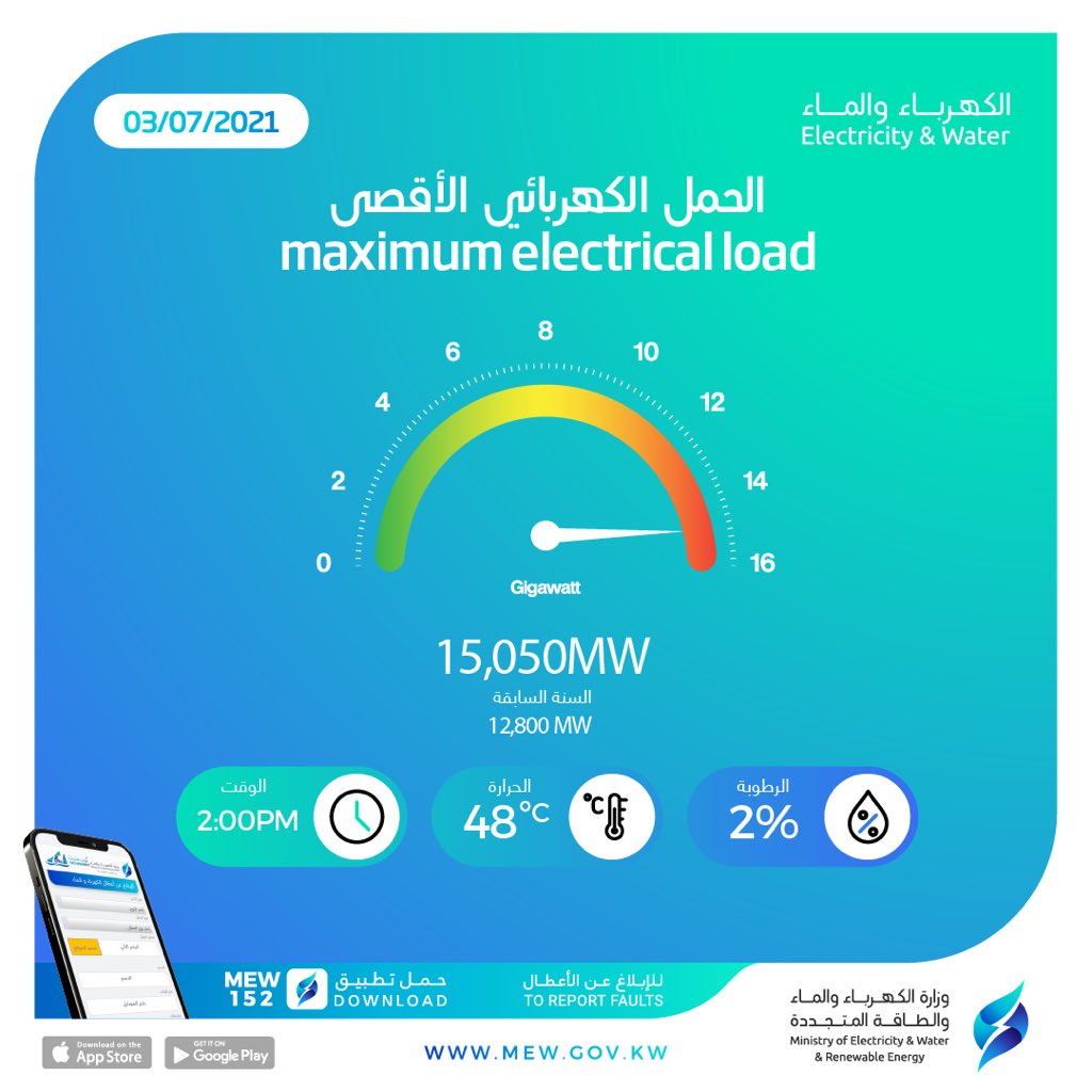 سجلت مؤشر الأحمال الكهربائية، اليوم السبت، 15050 ميغاواط، مقترباً من أعلى حمل قياسي تم تسجيله الصيف الحالي وهو 15070 ميغاواط.