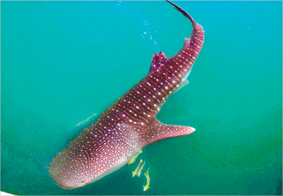 يذكر ان حوت 'المارينا' قد وصل مرسى قوارب 'المارينا' قبل أسبوع تقريبا ويعتبر هذا النوع من السمك الأليف ويسمى 'القرش الحوتي'، ويتمتع بحجم كبير جدا يصل عادة إلى أكثر من عشرة امتار ويتواجد بكثرة في مياه الخليج العربي، ويتغذى عن طريق الطحالب،لان اسنانه صغيرة جدا.