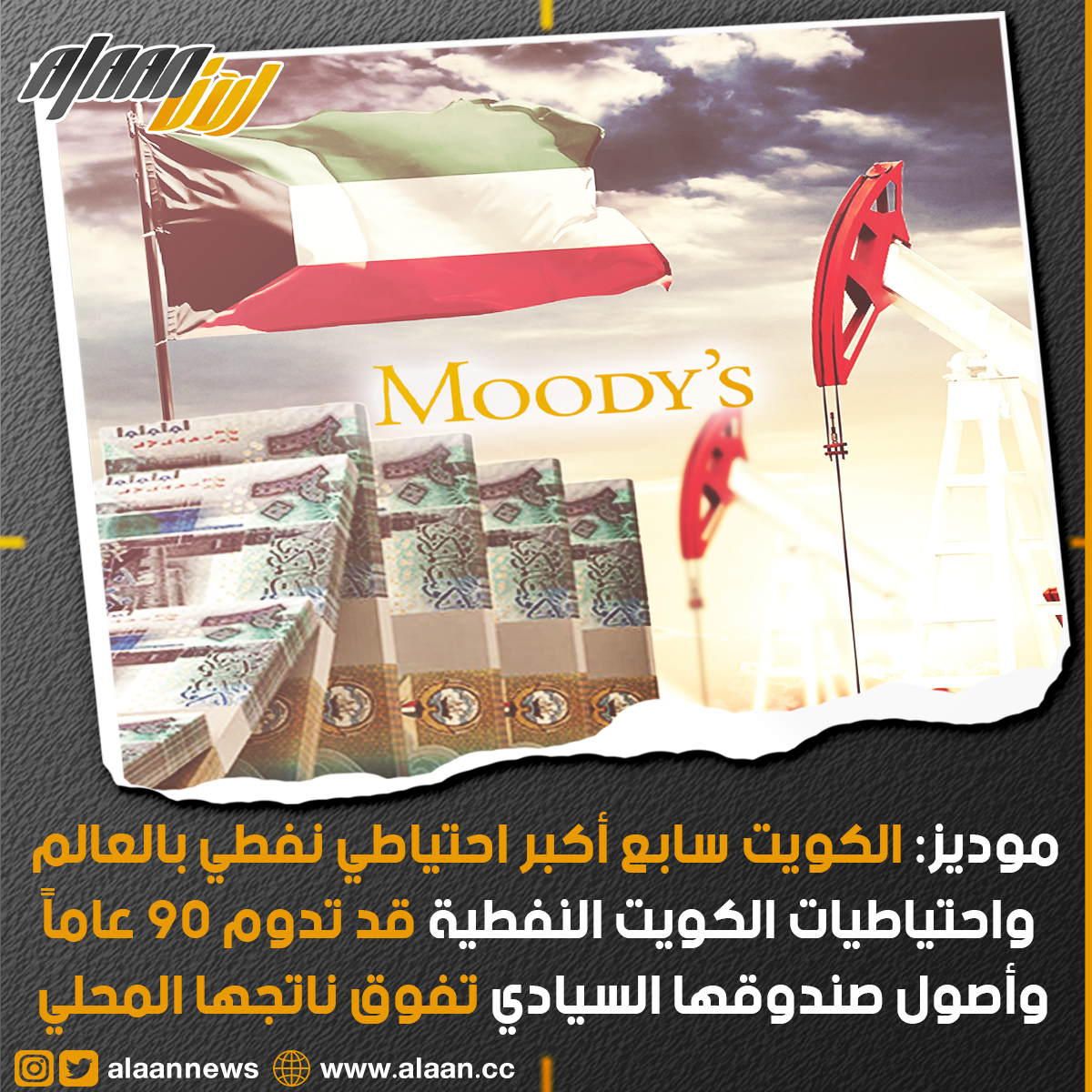 وعن تلك الاستثمارات التي تمتلكها الكويت قالت (موديز) ان اصول الصندوق السيادي الذي تديره الهيئة العامة للاستثمار "يفوق الى حد بعيد" الناتج المحلي الاجمالي للبلاد والديون الحكومية ما يعد مصدر قوة اقتصادية للكويت.