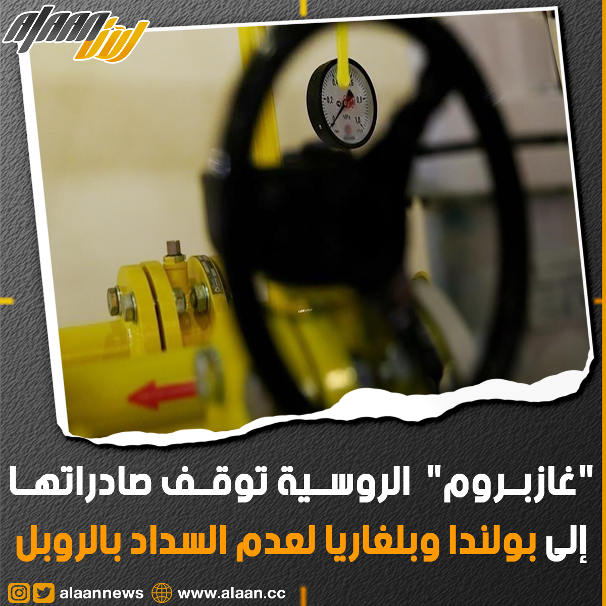 "غازبروم" توقف صادراتها إلى بولندا وبلغاريا لعدم السداد بالروبل