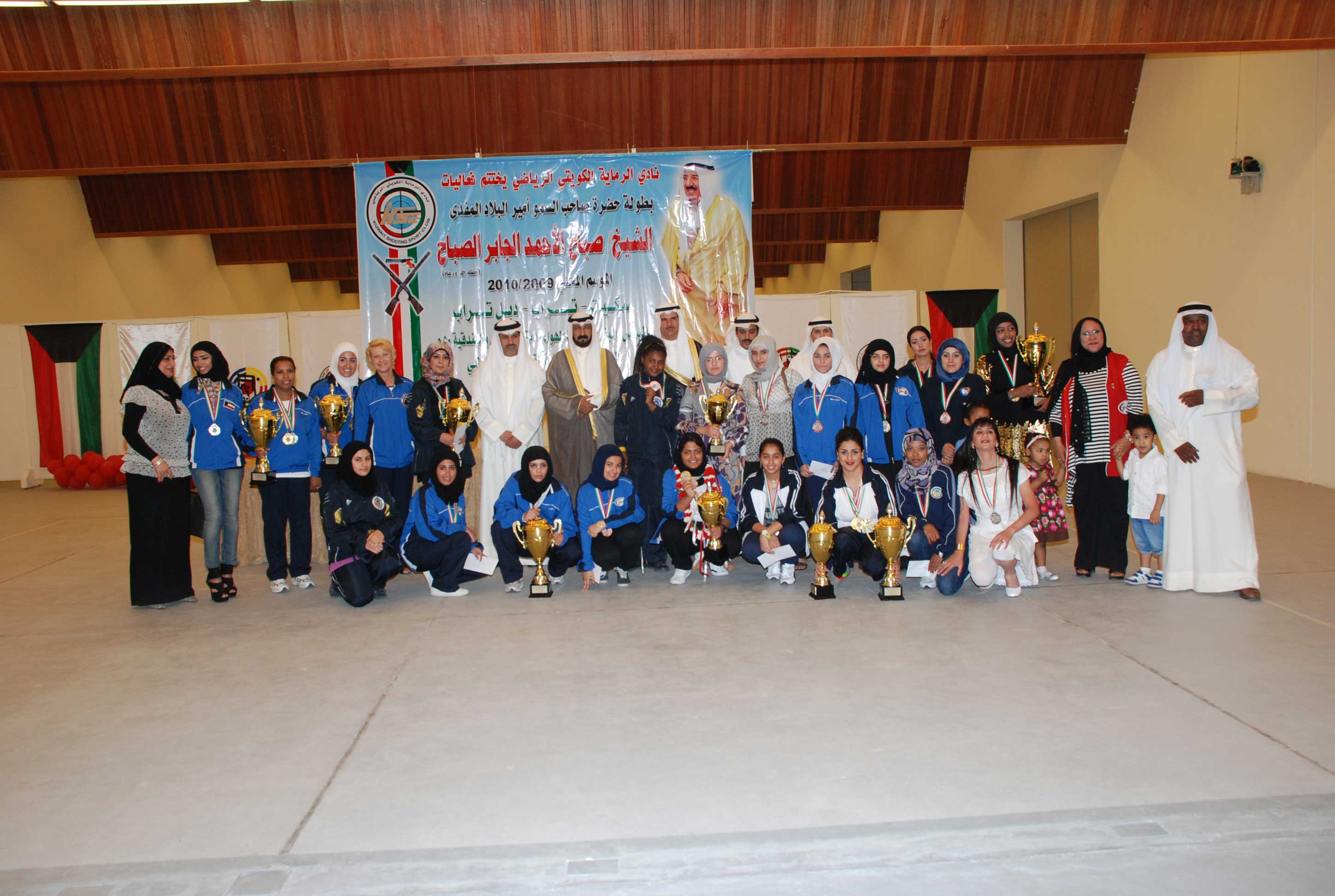 وبعد انتهاء الكلمة ، تم دعوة ممثل سمو امير البلاد المفدى معالى الأخ الفريق الدكتور/ محمد محسن العفاسي ـ وزير الشئون الاجتماعية والعمل ، وسعادة الشيخ / سلمان صباح السالم الحمود الصباح رئيس الاتحادين الكويتي والآسيوي للرماية والدكتور / حمود فليطح الشمرى والمهندس دعيج خلف العتيبي رئيس الاتحاد العربي للرماية والسيد / عبيد العصيمي امين السر العام لتوزيع الكؤوس والميداليات والجوائز على الفائزين والفائزات فى البطولة ، ومن ثم قام سعادة الشيخ سلمان صباح السالم الحمود الصباح بتقديم درع النادى التذكارى الى ممثل حضرة صاحب السمو امير البلاد المفدي ـ الفريق الدكتور/ محمد محسن العفاسي .