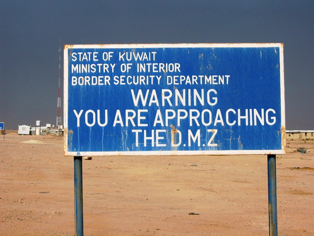 ان الادارة العامة لأمن الحدود 'ادارة الحدود الشمالية ' تراقب عن كثب تجمعا لنحو 150 عراقي تجمعوا على الحدود الكويتية على مقربة من ام قصر للاعتراض على ما يبدو على الموقف المتشدد والمستحق الصادر عن دولة الكويت ازاء التصريحات العراقية بشأن عدم الاعتراف بالحدود التي رسمت بواسطة مجلس الامن الدولي.
