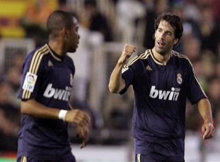 حقق ريال مدريد الساعي الى الحافظ على لقب الليغا الاسبانية للعام الثاني على التوالي الفوز على احد ابرز المرشحين لمنافستة على اللقب فالنسيا بخمس اهداف لهدف واحد,,,حيث لم يخفي ريال مدريد نواية اكثر من 39 ثانية حين نجح قائدة راؤول جوزالز بتسجيل الهدف الاول لفريقة كما يعتبر اسرع هدف هذا الموسم بعد ان تلقى تمريرة رائعه من ربينهو ثم توالت اهداف الريال على فالنسيا الذي وقف عاجزا امام المد المدريدي الذي اكل الاخضر واليابس في ارض الملعب حيث واصل نيستلروي المسلسل بهدفين بالدقيقتين 24 و36 وسرجيو راموس في الدقيقة 29 لينتهي الشوط الاول برباعية مدريدية خالصة في شباك أبناء الميستايا وفي الشوط الثاني سجل الهدف الشرفي لفالنسيا لاعبة ميجل انخل في الدقيقة 55 لكن ربينهو أبا ان تنتهي المباراة دون ان يدون اسمة بقائمة الهدافين حين نجح بتسجيل هدف فريقة الخامس في الدقيقة 65 ,, بهذا الفوز حافظ الريال على صدراتة لليغا الاسبانية بعد ان رفع نقاطة الى 25 نقطة بفارق 5 نقاط عن اقرب منافسية وهو برشلونة ...