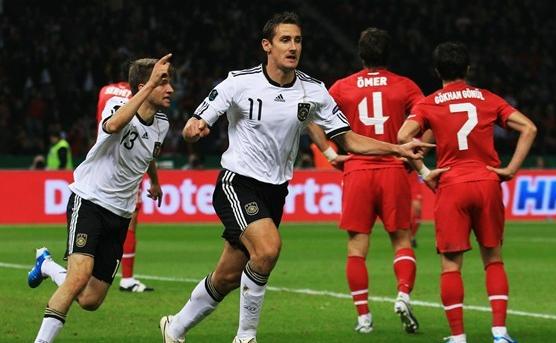 سحق المنتخب الألماني ضيفه التركي بثلاثية نظيفة في اللقاء الذي أقيم مساء الجمعة على الملعب الأولمبي في العاصمة برلين وأمام أنظار رئيس الوزراء التركي رجب طيب أردوجان ونحو 40 ألف مشجع تركي في الجولة الثالثة من منافسات المجموعة الأولى ضمن التصفيات المؤهلة إلى كأس الأمم الأوروبية 2012.