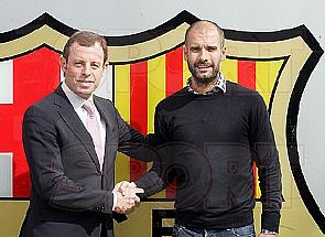 ووصل المدرب إلى مقر النادي يرافقه مستشاره جوسيب ماريا أوروبيتج ، ووقع العقد في وجود ساندرو روسيل رئيس برشلونة ، كما حضر مراسم توقيع العقد كل من مساعد غوارديولا تيتو فيلانوفا ونائب رئيس النادي للشئون الرياضية جوسيب ماريا بارتوميو، ومدير الكرة أندوني زوبيزاريتا.