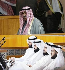 وقال الناطق الرسمي للكتلة د.فيصل المسلم ان الكتلة تطالب سمو رئيس مجلس الوزراء بصعود المنصة انطلاقا من الالتزام بالنصوص الدستورية وانتهاء من الاستحقاق المترتب على طــلــب تأجيله المناقشة لمدة اسبوعين مما يشير الى عزمه مواجهة هذه المساءلة وكذلك تأكيد رئيس المجلس جاسم الخرافي عندما اجاب النائب د.وليد الطبطبائي خلال جلسة الاستجواب بأنه سيكون هناك مناقشة في الاسبوع المقبل 'أي الجاري' مشددا على أهمية ان يطلع الشعب الكويتي قبل ممثلي الأمة على ردود رئيس الحكومة حول قضايا واتهامات وجهت إليه ومتعلقة بمواضيع حساسة متصلة بالسياسة الخارجية والأمن الوطني.