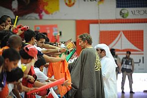 وأقامت اللجنة المنظمة بقيادة خالد الروضان احتفالية رائعة على طريقتها الخاصة في استقبال ضيوفها ، من مشاهير الرياضة وكرة القدم ، حيث اصطف مجموعة من الأطفال في طابور عرض ، حاملين أعلان مانشستر يونايتد ، للترحيب بفان دير سار ، الذي قام بدوره بالتوقيع على فانلات واعلام الجماهير .