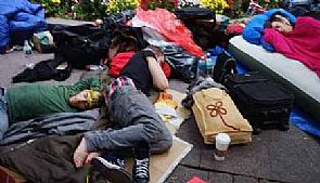 وينام المتظاهرون وقد دثروا انفسهم بالاغطية أو على مراتب اسرة.